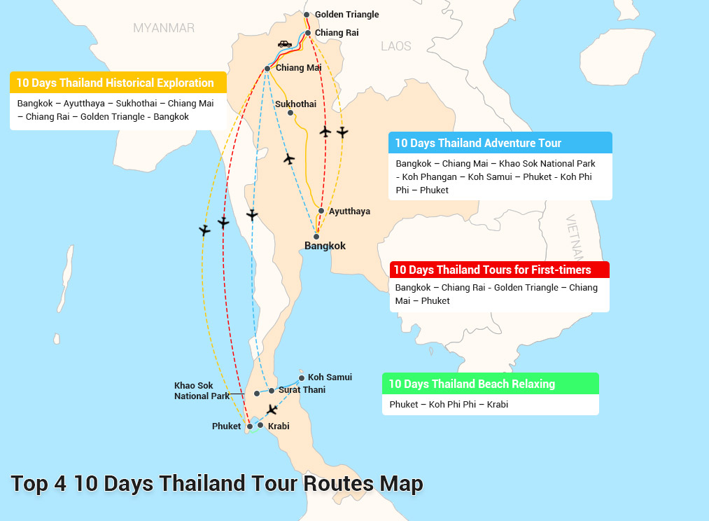 Most Popular Tour Routes for a 10-day Thailand Tour