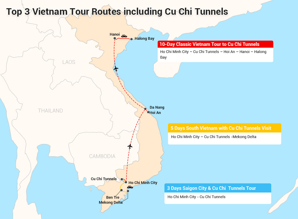 Top 3 Vietnam Tour Routes including Cu Chi Tunnels