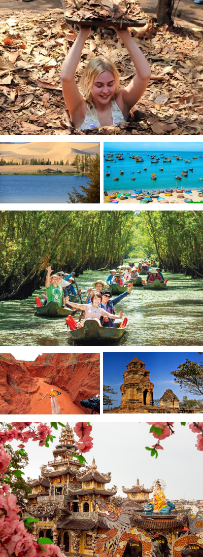 This 7-day family trip takes you to some of the best and most fun places in Southern Vietnam, with plenty of time to relax and explore. You will visit Ho Chi Minh City and the countryside, including riding a boat through the calm Mekong Delta, visiting the Cu Chi Tunnels, and more historic sites. Then, try the slide on the big sand dunes in Mui Ne and get fresh air in the beautiful hills of Dalat. At the end of the trip, you will return to Saigon, where the tour finishes, leaving you with memorable memories with your family.